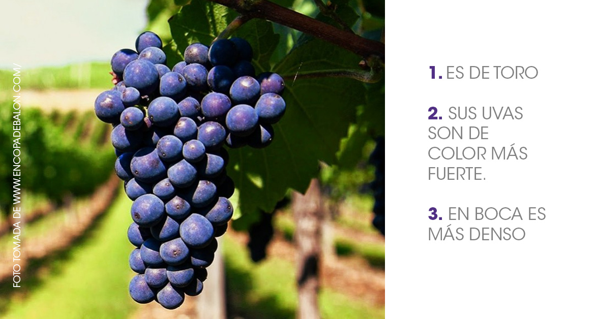 La tinta de Toro se caracteriza por ser una uva vigorosa y resistente a las enfermedades, lo que la hace ideal para el cultivo en regiones secas y cálidas. Las uvas son pequeñas y compactas, y tienen un alto contenido de azúcar y ácido, lo que las convierte en un componente ideal para la producción de vinos tintos con cuerpo y estructura.